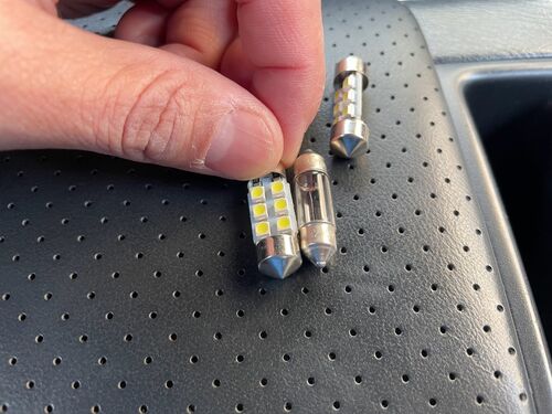 LED化…と書きましたが現在付いている電球をサイズ互換のあるLED電球に変更するだけです!これもレンズ部分が外せれば簡単に交換が可能なはず!と言うことでやってゆきます。 電球とLEDの違い 左がLED、右が従来の電球です。 端子部分は同じ。フィラメントの…